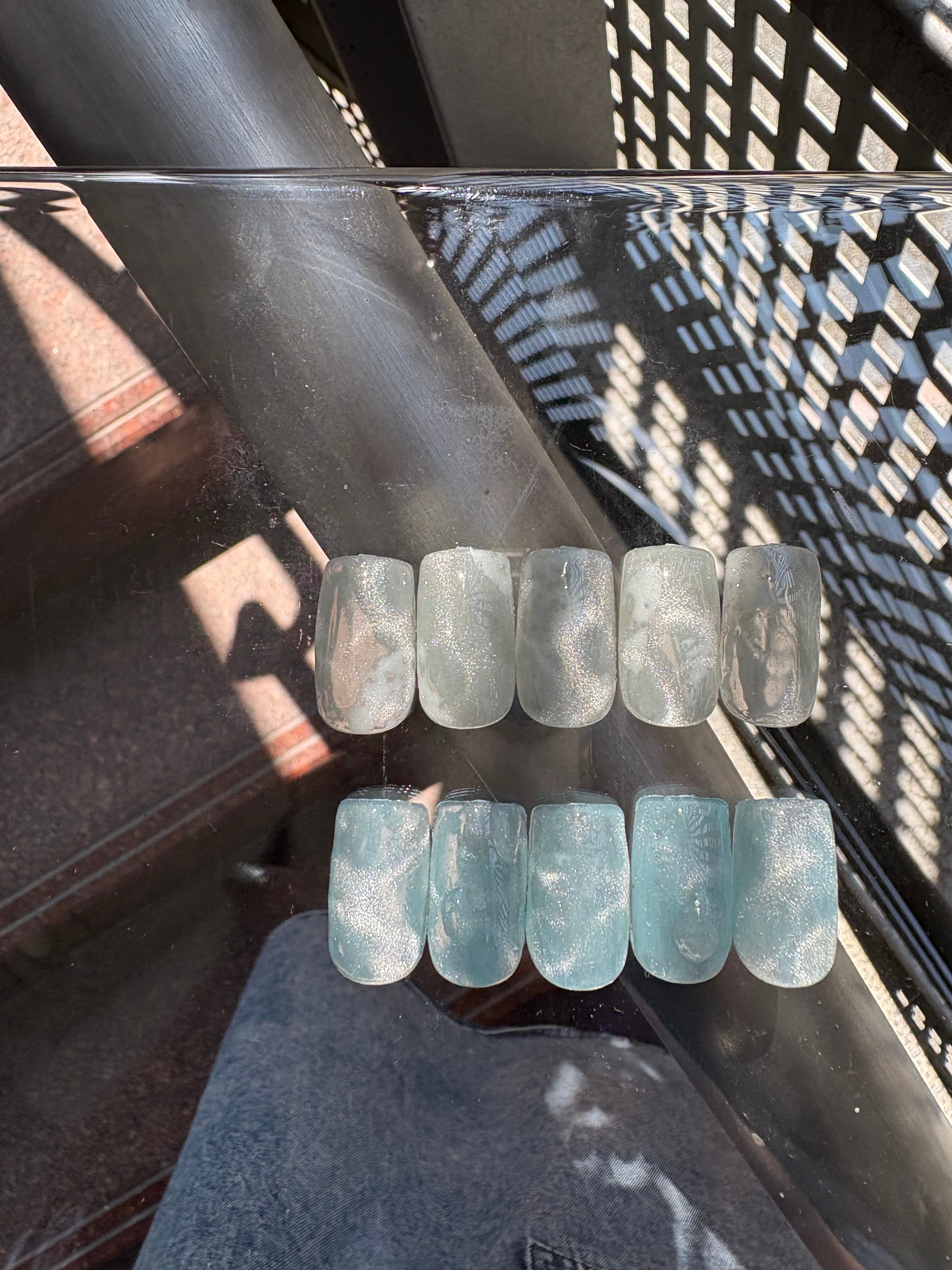 単価U Pメニューにできるウルウル透明感のある水面のようなウィーターネイルのレシピを詳しく解説しています。